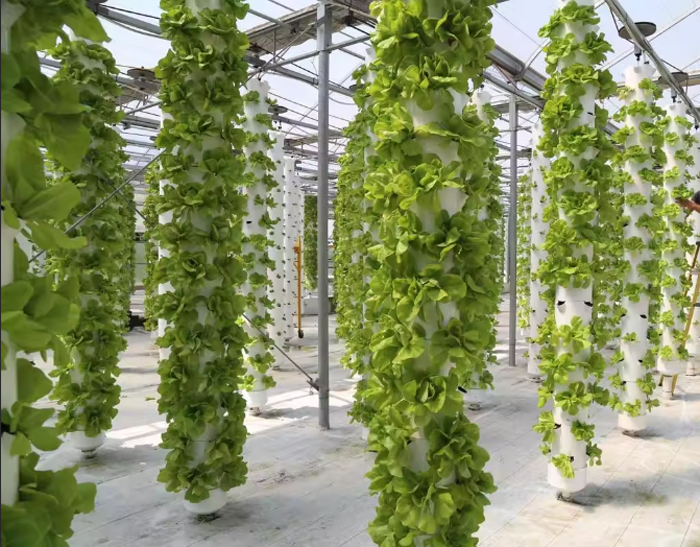 采用立柱式设计的垂直水培种植系统,适用于生菜、香草等各种叶菜类作物种植。
