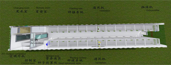 垂直农业集装箱是一个安装在40英尺集装箱内部的自动化种植系统,配备垂直种植架、空调、照明系统、灌溉系统等设备,具有节约土地、高效节能、便于移动运输等优点。