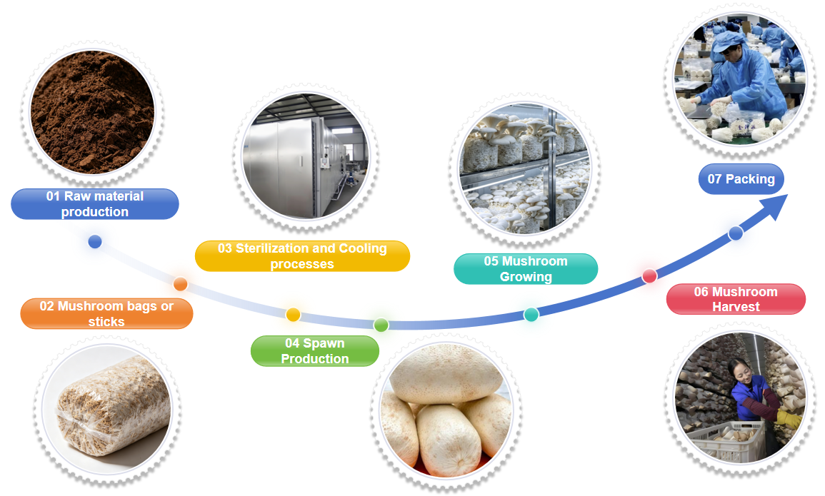 • Standardized growth: Unaffected by external seasons and climate, achieving a balanced daily mushroom production, ensuring consistent quality edible fungi in any season.